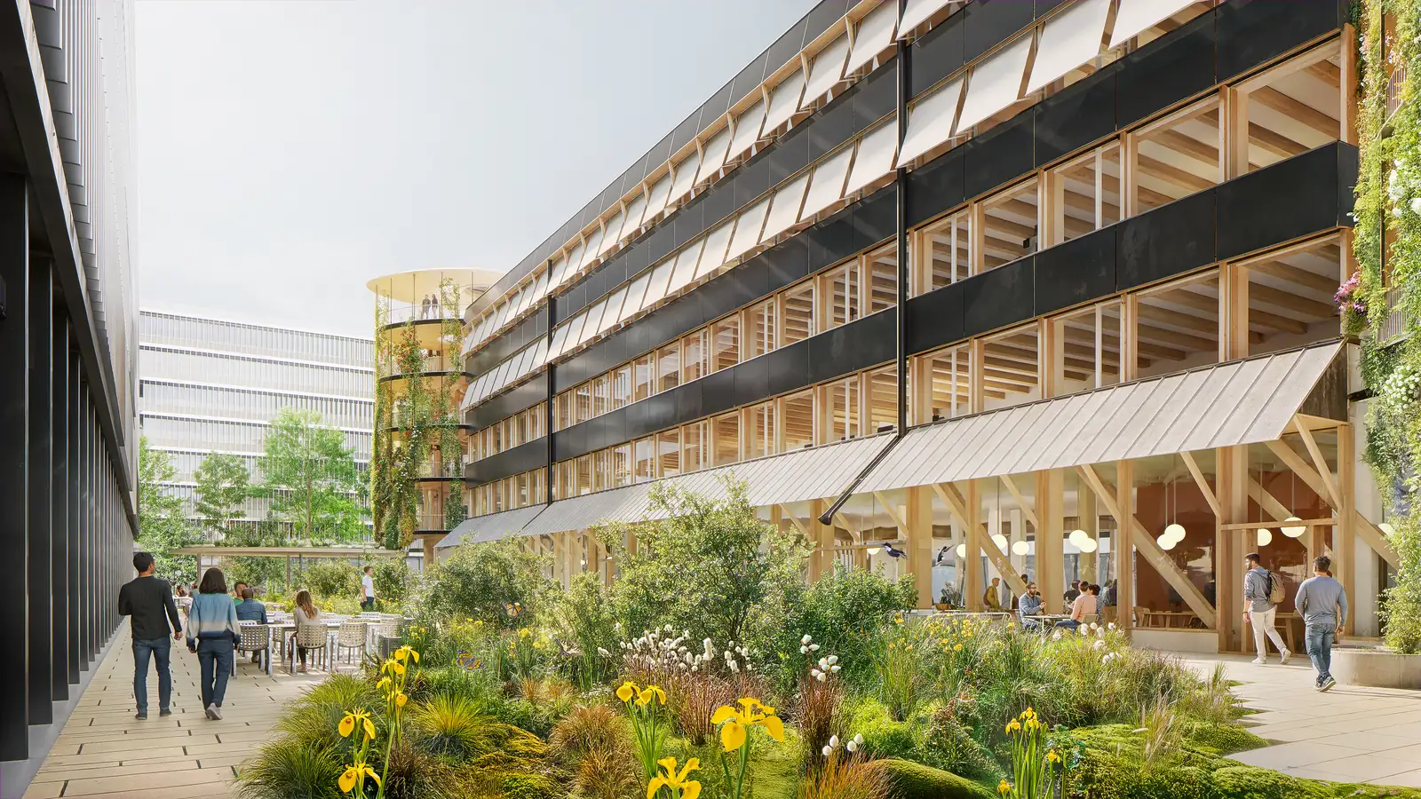 - NachhaltigkeitDie oberirdischen Geschosse werden in reiner Holzbauweise erstellt, wodurch das Projekt einen sehr geringen CO2-Fussabdruck aufweist. Die Holzkonstruktion ist zudem so konzipiert, dass sie in Zukunft demontiert und wiederverwendet werden kann