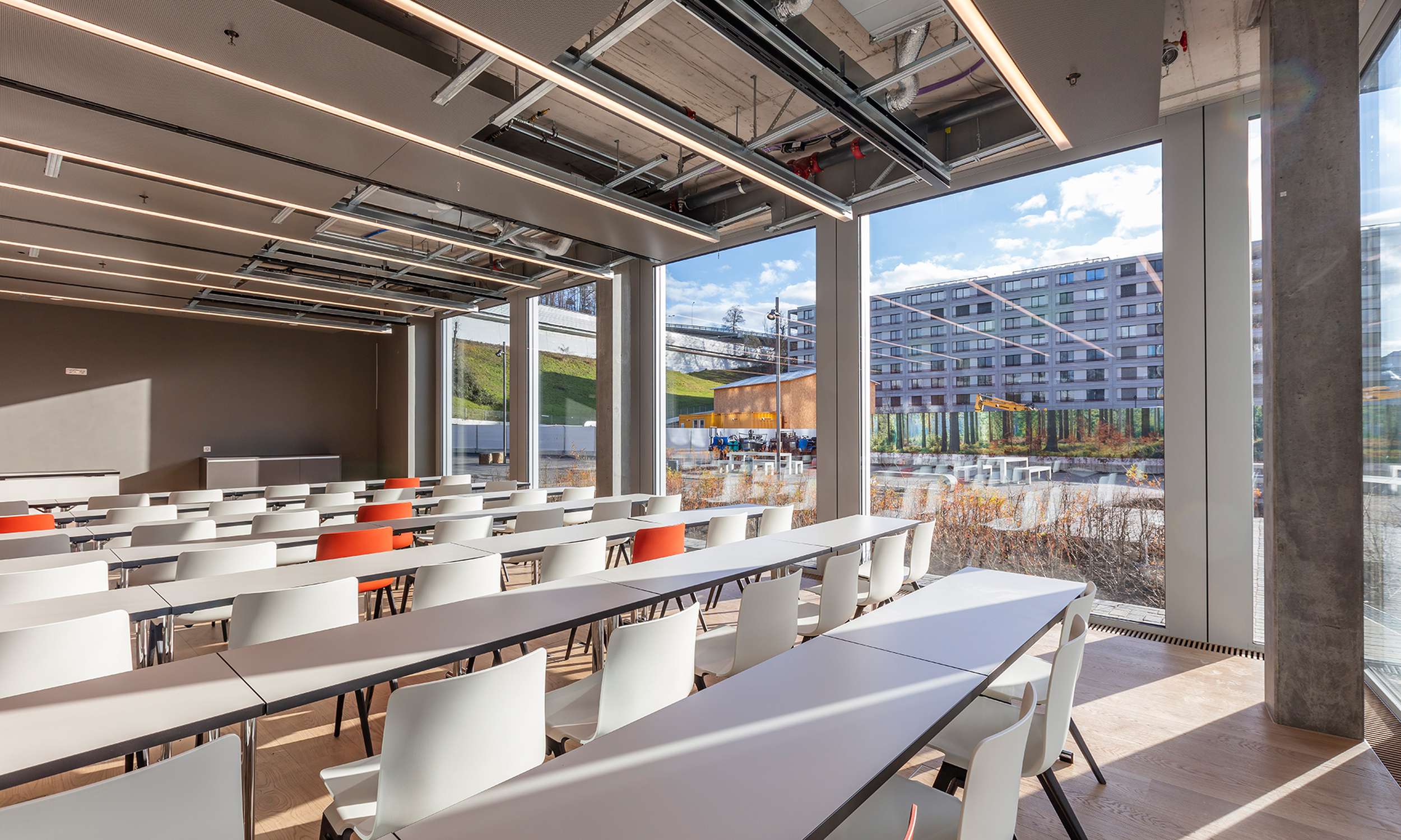 Le bâtiment Pergamin II apporte une touche incontournable au quartier Greencity. Avec ses onze étages, une hauteur de près de 40 mètres, et sa discrète façade composée de tôles d’aluminium galvanisées aux coloris naturels et dorés, le bâtiment de bureaux et de formation se distingue par son allure élégante et intemporelle. Derrière sa façade, Pergamin II abrite sur une surface de 12 000 m² un concept innovant avec des implantations structurées et une grande flexibilité. La ventilation naturelle, la lumière du jour omniprésente et la conception astucieuse des espaces créent les conditions idéales pour un bâtiment aux multiples usages où l’on a plaisir à séjourner.
