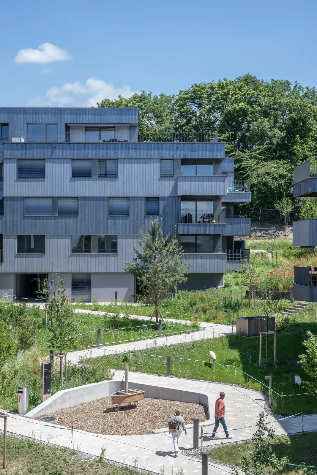 Loin de s’arrêter là, Arbora a tout mis en œuvre pour devenir le premier quartier suisse couronné du label WELL Community. Avec ce label, la priorité est donnée à la qualité des espaces extérieurs. Parmi la dizaine de critères à respecter, citons notamment la qualité de l’air (stationnement prioritaire de véhicules électriques ou à faible émission, messages d'alerte sur la qualité d'air), la qualité de l’eau (installation de fontaines d’eau potable accessibles dans les espaces extérieurs), l’alimentation (cours de jardinage et sensibilisation à une alimentation équilibrée), le confort acoustique et thermique (message d’alerte en cas de canicule) et la promotion de la vie communautaire (lieu d’accueil pour personnes âgées, fêtes de quartier, activités culturelles).